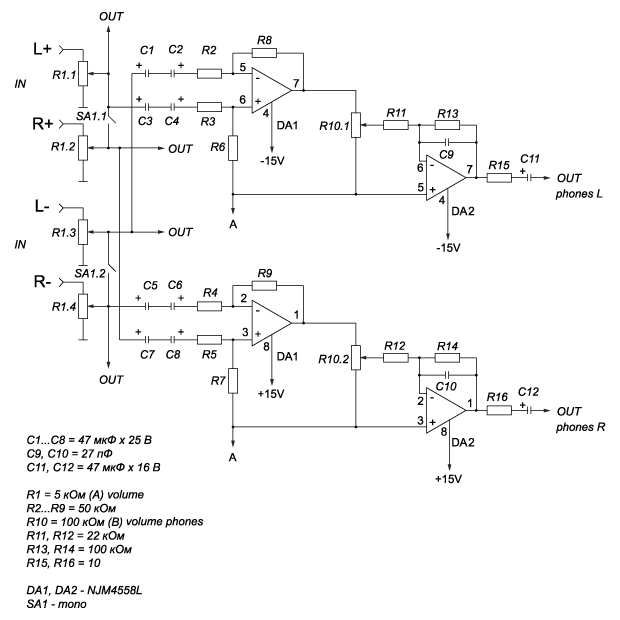 В начале была мысль пойти по пути автоакустики, и просто взять самый бюджетный монофонический усилитель и на вход повесить сумматор. Но далее, оказалось, что все они на 2 или 4 ом.