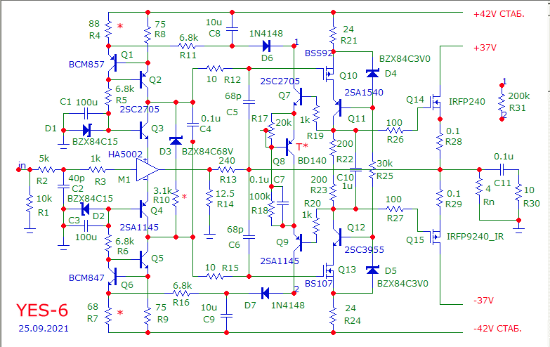 Не очень доволен характеристиками того усилителя, хотел взять переднюю часть как раз от одного из предыдущих YES и срастить с таким выходным каскадом. Если все получится, попробую YES-6 собрать, сейчас все же двойное питание смущает.