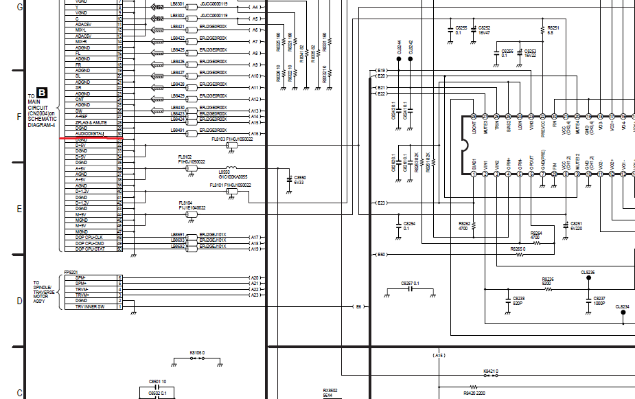 С платы DVD на основную плату уходят сигналы только по этому разъему:Нажмите на изображение для увеличения.