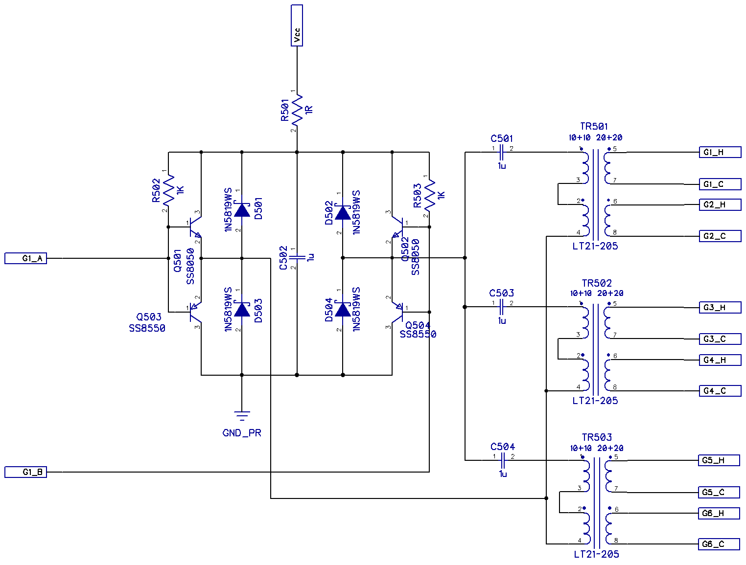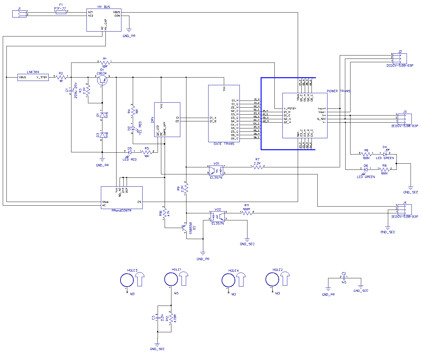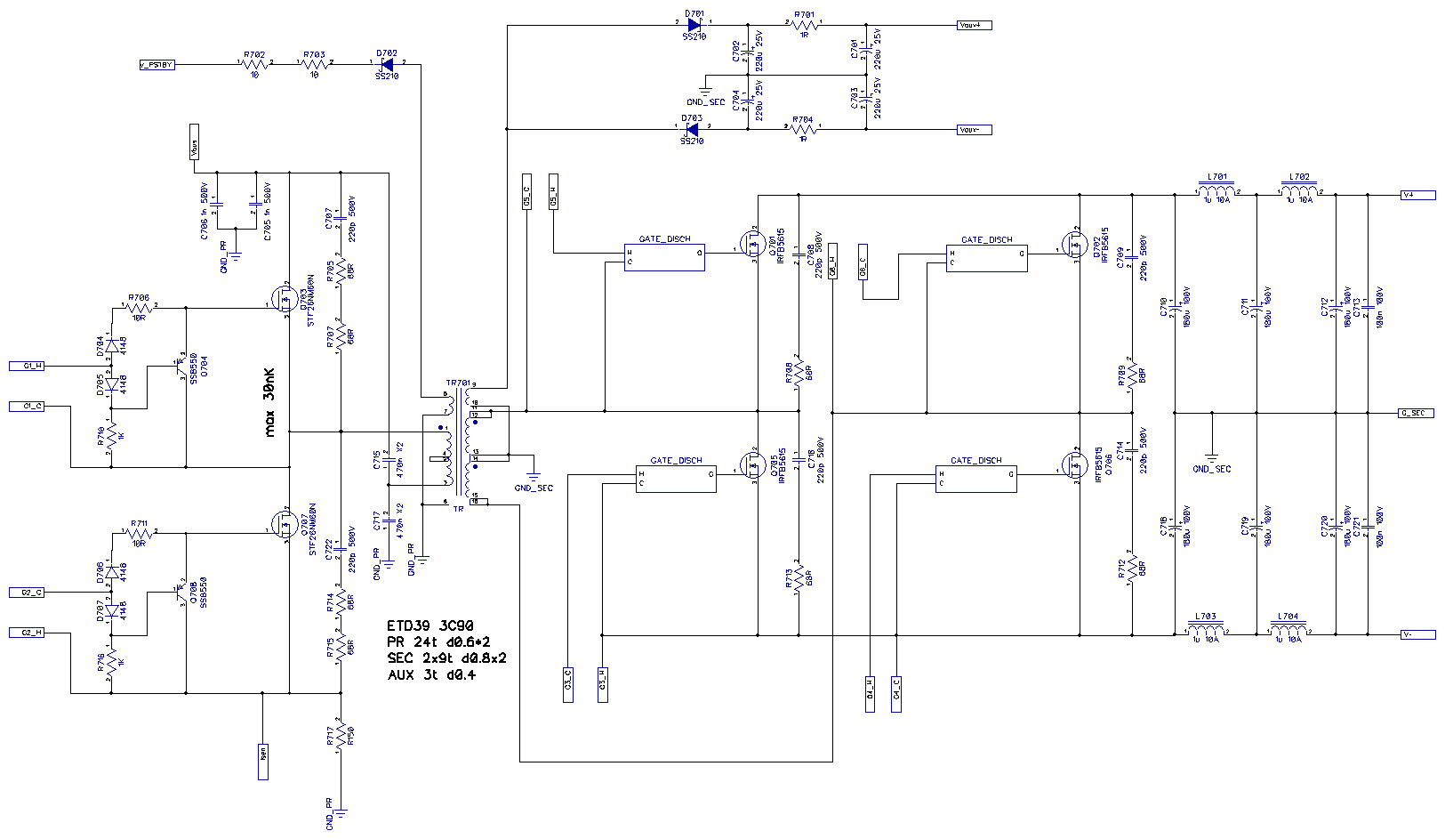 из особенностей - применения сверхдешевых готовых развязывающих трансформаторов (0,3$). Они очень мелкие, потому заряд затвора силовых транзисторов должен быть менее 30нК, а частота выше 75кГц.