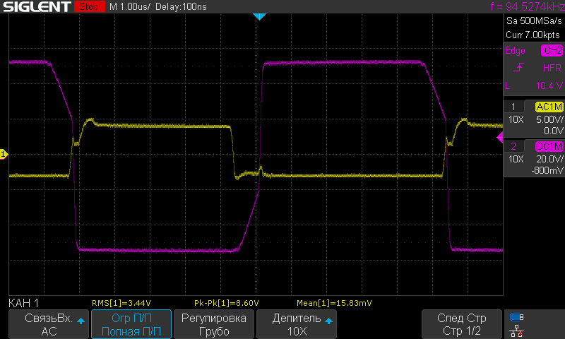 Позволяет без дополнительных мер полумостовому усилителю клипировать на 10Гц без существенного перекоса напряжжения плеч (пульсации в таком режиме 3В RMS)/