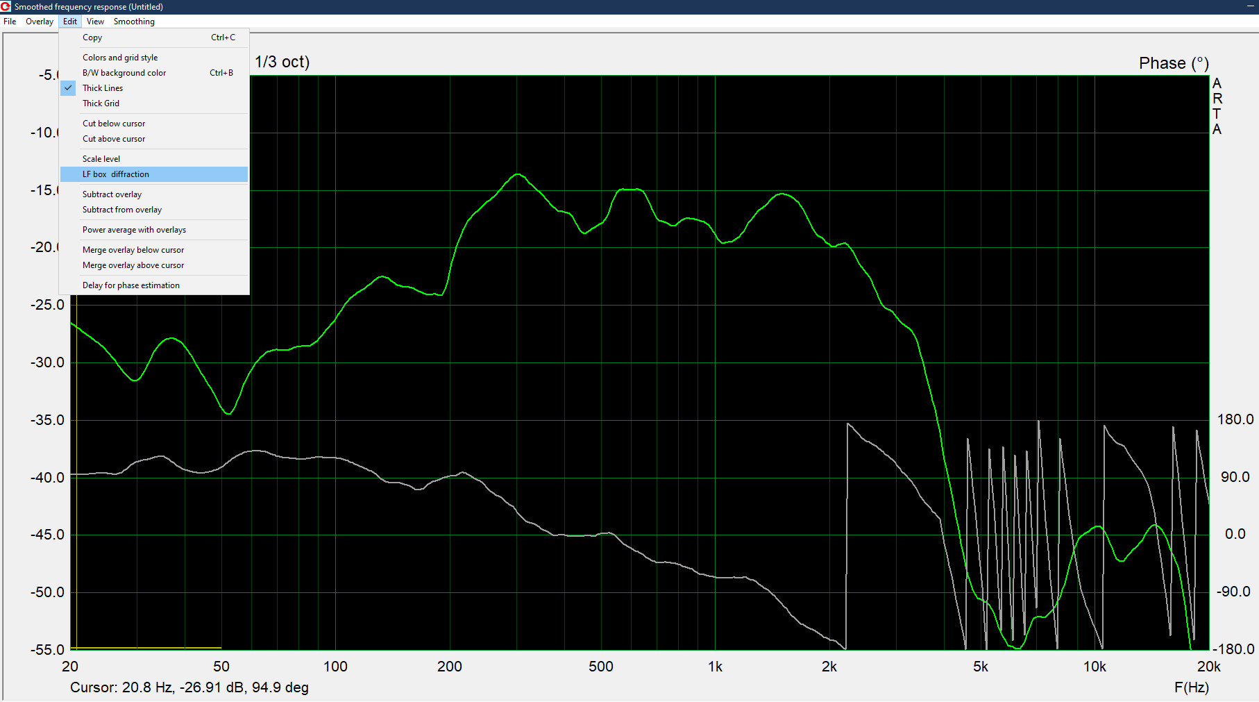 В конце экспортируй уже поправленный график, который затем импортируешь в свой проект, но уже в основное рабочее пространство, для чего в этом же симуляторе VituixCAD2 создай новый отдельный проект, в котором будешь работать только с этим поправленным графиком ближнего измерения НЧ-динамика. Сводить полосы в нем не нужно. Здесь фазовая характеристика значения не имеет, её "красота" лишь подтвердит качество измерения АЧХ.