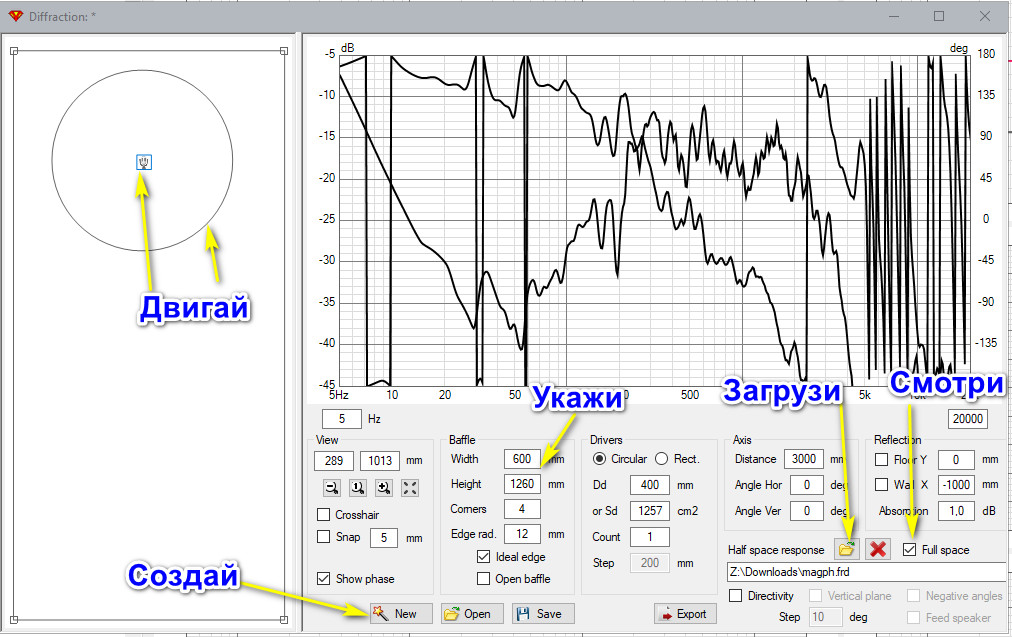 Я умышленно пропускаю момент с пришиванием отдачи от трубы ФИ или лабиринта. Если посмотришь видео, то в конце будет немного о работе со спектроанализатором. В нем можешь посмотреть отдачу порта в ближней зоне и с помещением в дальней, с метра.