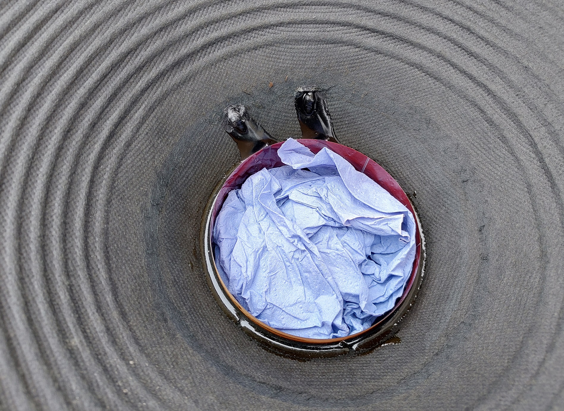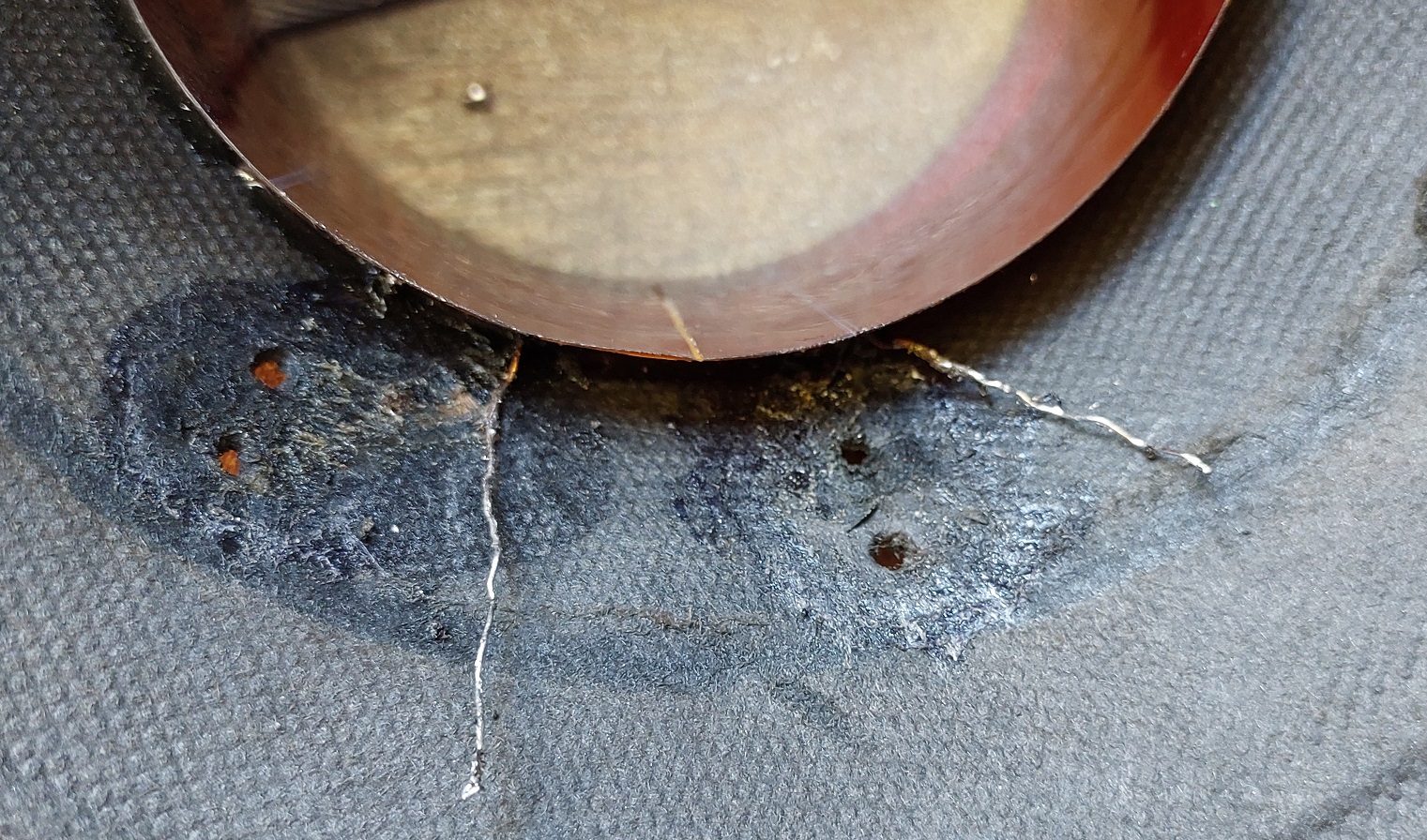 Всем привет. В общем, износились подводящие в эстрадном динамике 15". По-заводу чем-то залиты, оно без нагрева - довольно жесткое, при нагреве - можно тянуть и отрывать потихоньку. Выглядит это как-то так (уже начал греть, но успел сфоткать):