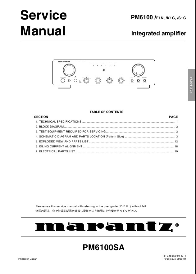 Здравствуйте. Нужен сервис мануал на усилок marantz pm6100sa ver2 , в интернете нигде не могу найти.