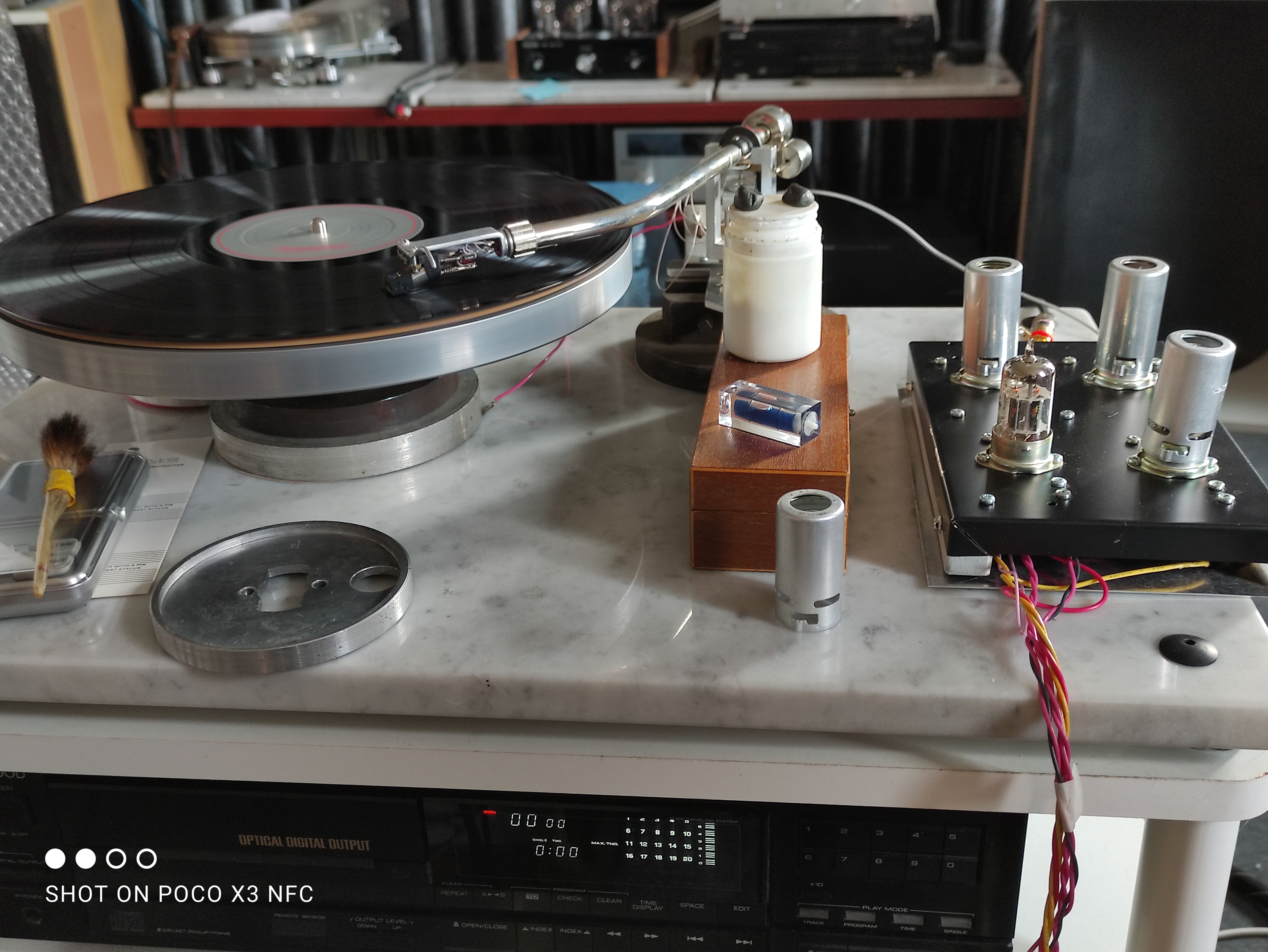 Вот один из моих корректоров на квазирезонансном БП, на одной из моих вертушек. Ключи стоят без радиаторов, греется, только кренка по питанию накала. Тишина по питанию, как от аккумулятора. БП работает на 60 кГц. Трансформатор, это зло для корректора! Эта гадость сеет магнитное поле во все стороны.