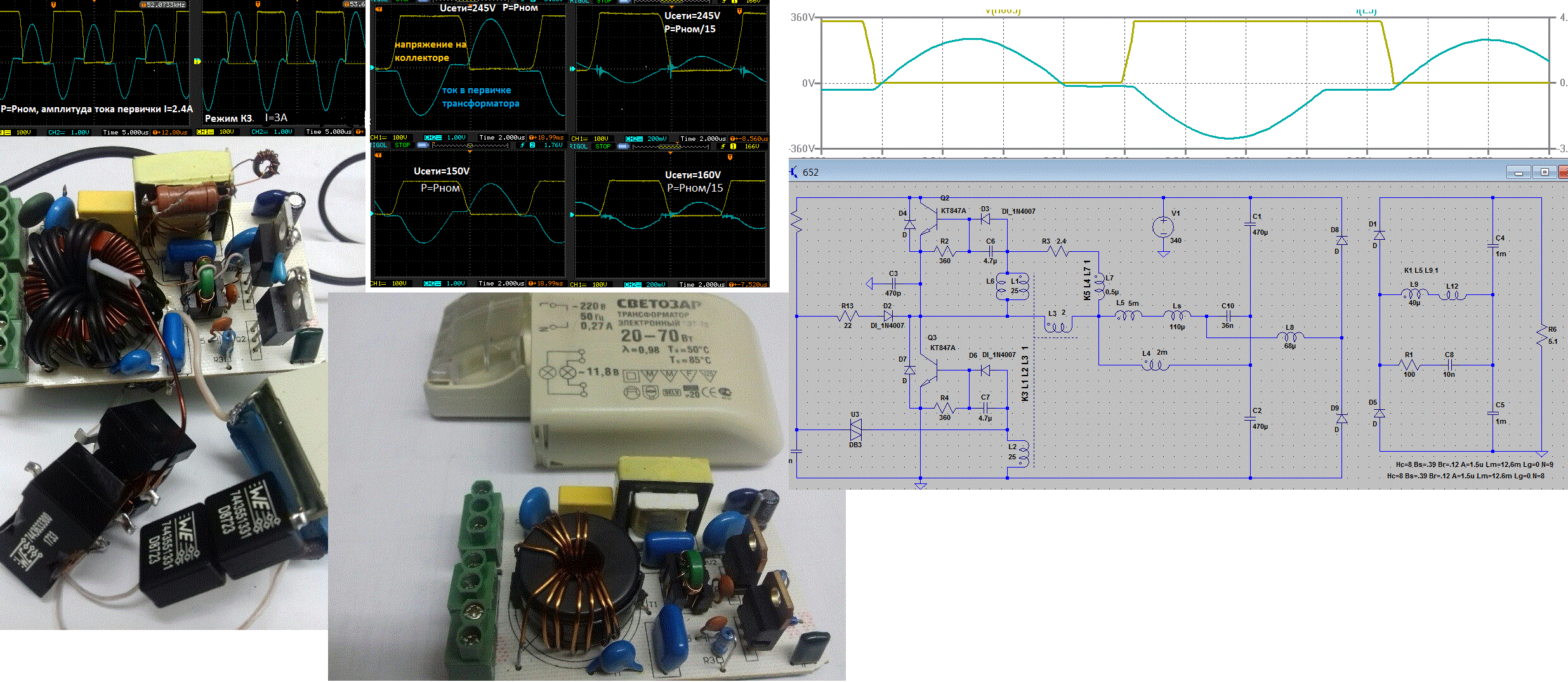 На картинке переделанный электронный трансформатор для галогенок c учетом вышесказанного. Оптимальный ZCS резонансный режим сохраняется во всем диапазоне питающего напряжения при нагрузке от ХХ до КЗ. ZVS тоже в наличии, пологие фронты напряжения на ключах.