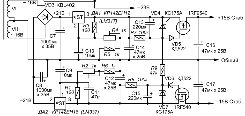 3 Кстати, на этих полевиках ожн организовать "виртуальную" батарейку для дополнительной фильтрации питания ОУ