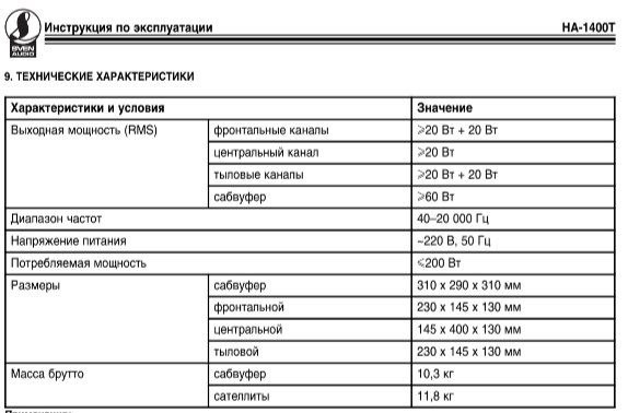 Характеристики 5.1 Sven HA-1400T