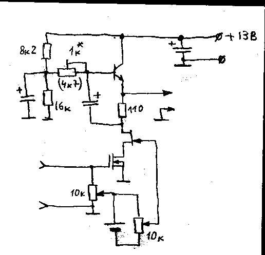 Одним резистором устанавливал напряжение на его стоке, другим - минимизировал искажения при этом напряжении.